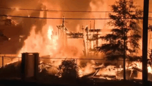 When crews arrived, they discovered a commercial structure well involved. The building where the fire began was vacant and had no power.