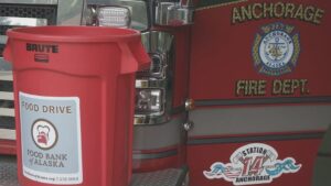VIDEO: The Anchorage Fire Department’s 9/11 food drive to benefit the Food Bank of Alaska exceeded its goal by a landslide. The 9/11 food drive began on Labor Day and ran through Sept. 11. “Our original goal with this first-ever 9/11 food drive was 2,977 pounds, and that represents one pound for every life that was lost during 9/11,” AFD Public Safety Officer Jason Dolph said. “In just 11 days, 4,637 pounds of food poured in from AFD employees and members of the public,” the Anchorage Fire Department said on Facebook, “that equates to 3,864 meals.”
