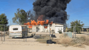 Arizona Fire & Medical Authority said the blaze broke out around 1:30 p.m. on Palo Verde Road, about 1.5 miles north of Interstate 10. When firefighters showed up, they found the double-wide home fully engulfed in flames, forcing crews to go defensive as flames shot up through the roof. One person suffered smoke inhalation while a firefighter was rushed to a nearby hospital with minor injuries.