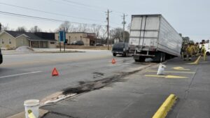 A fuel spill was reported on Sunset Avenue shortly before noon after a semi-truckโs trailer became detached and damaged the vehicleโs fuel tank, according to the Springdale Fire Department.