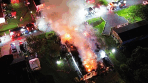 PHOTOS: Fire crews from multiple departments responded late Monday to a large house fire and explosions in the Bay City neighborhood off Long Neck Road. The Indian River, Lewes and Millsboro fire companies were dispatched around 10:30 p.m. June 30 to the 35000 block of 6th Street. According to the Indian River Volunteer Fire Company, the fire was fully involved when crews arrived, with flames threatening nearby homes. The Mid Sussex Rescue Squad and Sussex County Paramedics were also called to the scene. Dagsboro and Gumboro fire companies were put on standby and assigned to cover other calls. First arriving teams reported heavy fire and multiple explosions inside the home. Firefighters worked to knock down the flames, with additional hoses pulled as needed. Crews worked both inside and outside the burning structure to contain the fire and protect exposures on both sides of the house.