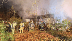 According to officials, once on the scene, members began flowing handlines and opening up portions of the structure. Because the home was abandoned and the fire was already well advanced, crews operated from the exterior only.