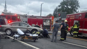 First arrivals from the Five Points Fire Company and New Castle County Paramedics found the 59-year-old scooter rider beneath the vehicle. Fire department personnel extricated him, and paramedics worked on scene before transporting him in serious condition to Christiana Hospital in Stanton aboard an ambulance operated by Five Points. He was reported to have sustained a chest injury and possible internal trauma.