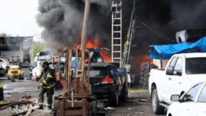 VIDEO/PHOTOS: Hillsborough County Fire Rescue said multiple crews responded to a massive fire in a salvage yard on Saturday. Crews were called in at around 3:15 p.m. to a salvage yard on Jensen Road, with reports that a forklift had caught on fire. The flames quickly spread to surrounding vehicles until around twenty cars were ablaze. HCFR said they initially faced some challenges with water supply due to the scale of the fire, but were able to establish a flow to two aerial trucks that battled flames from above. There were also challenges from the weather. Storms and lightning grounded aerial operations, though responders stayed on the scene with firefighting foam to tackle the last of the flames. One civilian was transported to a local hospital with serious burn injuries, HCFR said. No injuries to first responders were reported. The fire was extinguished after around two hours, and an investigation into the cause has begun.