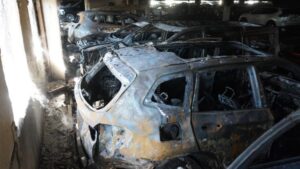 “We actually have to pull the hose and drag it manually up the stairs, up to the stand pipes, connect it and as it is occurring, multiple vehicles are catching fire,” Williams said. “We heard several tires popping, those mini explosions, because of that, it is a labor-intensive operation, which is why we did request a second alarm.”