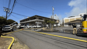 The Honolulu Fire Department (HFD) responded to a building fire incident that was reported in the Kalihi area Sunday morning. The incident was initially reported at approximately 9:28 a.m. and the first and second alarms were set off at 9:33 a.m. and 9:36 a.m. As HFD crews responded to the scene, they discovered smoke rising in the air and called for other units to respond. The Honolulu Police Department (HPD) also responded to the scene that was reported to be located on 931 Austin Lane and N. King St. According to HFD, water was on the fire by 9:39 a.m. with multiple units responding to the scene with approximately 60 firefighters battling the blaze.