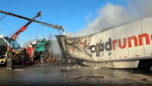 Due to the hazard, all northbound lanes were closed. As of 4 p.m., all lanes remained closed. Wayne Township Fire Department said the interstate would be closed “for an extended time” due to the semi tractor-trailer catching fire.