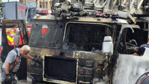 VIDEO/PHOTOS: An Anne Arundel County Fire Department fire engine was destroyed after a blaze on Monday. Baltimore City firefighters helped extinguish the flames of a fire that began in the 500 block of Ensor Street around 2:00 p.m. on June 30. It’s unclear if anyone was injured in the fire, but the fire engine was destroyed. Anne Arundel County Fire Department officials said that its reserve truck was out of service and at a private contractor’s maintenance shop for repair work on Monday. That repair work required a type of cutting or welding, officials said. The fire started when fire personnel drove out of the shop. That’s when they realized that something had caught fire beneath the fire truck, according to authorities.