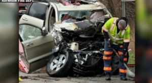 VIDEO: An off-duty firefighter, along with other good Samaritans, jumped into action to save a woman from a burning car in Raynham Sunday afternoon. Lieutenant Brian Trefry says he was driving on the opposite side of the highway when he saw a car on fire. The car was stuck in a ravine after a rollover crash. Trefry says he ran across the highway to the car, and with the help of others, was able to pull the woman to safety. Trefry says it was a mix of instinct and training that prompted him to help.