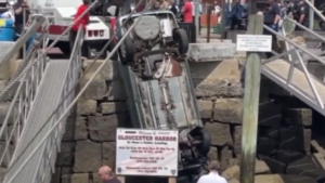 VIDEO: Three passengers were rescued after a car plunged into the water at a park in Gloucester, Massachusetts, the city’s fire department said Sunday. The car went into the water at St. Peter’s Park just before 11 a.m. Sunday. Two off-duty Gloucester firefighters were on a boat nearby and witnessed the crash. The firefighters, Deputy Chief Andrew McRobb and Lt. William Doucette, called the crash in and ended up rescuing the trio of occupants, along with help from fishermen and bystanders who were nearby, Gloucester fire said.