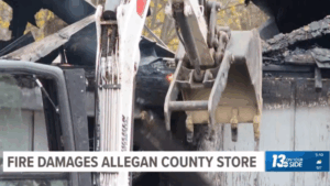 VIDEO: A community meet up spot in Allegan was damage in a fire Wednesday morning, the Gobles Pine Grove Fire Chief told 13 ON YOUR SIDE. Chief Brian Cronk said a call about the fire came in at about 6 a.m. Seven fire departments ended up responding.