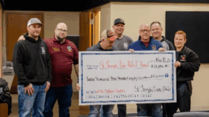 The humble bratwurst brought home a princely sum in St. Joseph that will benefit the local volunteer fire department. During the summer, the Saint Joseph Lions held their traditional brat sales with proceeds helping fund the purchase of new radios for the fire department. At this weekโs meeting, the club presented a check for $12,386.80.