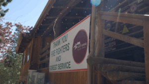 All the cabins at the Lost Horse Lodge were quickly evacuated, with many workers even helping get guests to safety before leaving themselves. “I was the last one leaving. There’s a house right across the street and the fire is right on the hill right behind it. I’ve got pictures of that. It took me a good hour and a half to get out of here after I finally got kicked out, making sure that everybody was safe,” Stanford said. As a thank you, the Lost Horse Lodge has been feeding fire crews as well as posting signs showing their appreciation.