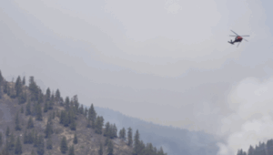 The fire is burning in steep and rocky terrain, making it difficult to access. It is one of four fires that started up along the highway between Perma and Paradise on Sunday afternoon. The cause of the fires is still under investigation. “It started in some light, flashy fuels, moved up the slope into some timber, mostly ponderosa pine,” Kaiser said. “Now, it’s starting to get into the head end of some drainages, so a little bit more timber. That obviously makes it a little bit more difficult to get around it.” Due to the fire’s inaccessibility, search and rescue boats have been shuttling many of the firefighters across the Flathead River. Others are taking up roads high up into the fire area. Crews on the ground are also getting support from the air.