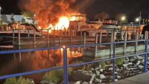 According to the Bay City Department of Public Safety, several other boats at the marina had been entered and vandalized. Police did not say how many suspects there could be. There were no injuries, and no one was on the boat at the time of the fire. Booms were deployed to help prevent the spread of contamination into the Saginaw River. The Coast Guard and Michigan EGLE are at the scene investigating the possibility of a spill.