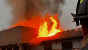 The fire started in the attic and quickly spread to the roof. Deputy Fire Chief Byron Moore said the flames burned so intensely that the roof eventually collapsed, forcing crews to switch to defensive tactics.