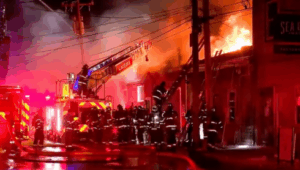 PHOTOS: Firefighters battled to contain a massive blaze that sparked Friday evening at a historic wharf in Portland, Maine. One building was destroyed in the fire, and others were damaged in the blaze that broke out on the Custom House Wharf, FOX 23 reported.