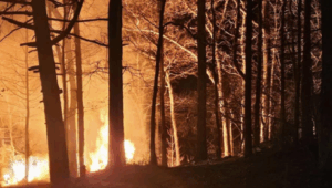 On New Year’s Eve, around 7 p.m., Western NC fire crews, including Broad River Fire & Rescue and Chimney Rock, received several calls regarding a fire at the 900 block of Bald Mountain Road, an area previously burned during Party Rock.