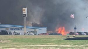 Rolla resident Josh Munro was heading out of town when he got the phone call about the grass fire burning just a few yards away from his car dealership. Pictures from Sunday showed how close the fire was to the cars on the lot and to nearby homes. “I thought there was no way that thing was going to stop. I mean, it was coming in so fast, and I thought for sure that the flames were just going to engulf the dealership,” said Munro.