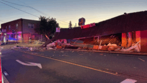 PHOTOS: One person is dead this morning after crashing a vehicle into the Timber Pub & Grub off Highway 212. Clackamas Fire says they responded to the crash at 6:03 a.m. “Initial reports indicated that a vehicle had crashed into a building, causing a partial roof collapse and leaving one person trapped inside the vehicle,” Clackamas Fire told KATU News in an email. Officials say when firefighters arrived, they worked to stabilize the building and safely remove the driver of the vehicle. The driver was taken to a hospital where he succumbed to his injuries. One person was inside the building at the time of the crash but was not injured. Highway 212 was closed in both directions. Oregon State Police are leading the investigation.