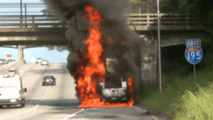 VIDEO: A pickup truck caught fire on I-195 East in East Providence Wednesday evening. The truck burst into flames in the breakdown lane near Exit 1C just after 6:30 p.m.