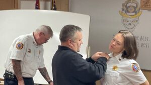 Her husband, who is currently a Battalion Chief and training officer for the Ladyโs Island/St. Helena Fire District, had the honor of pinning on her new badge.