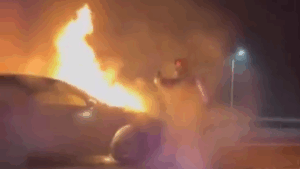 VIDEO: A video shows rescue crews putting out a car fire on Interstate 95 in Florence County on Sunday night.