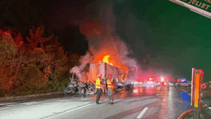 A second crash took place by mile marker 225 involving a tractor-trailer hauling clothing material, which caught on fire, officials said.