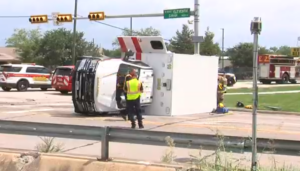 VIDEO: Police are investigating after an ambulance overturned while on the way to a call Monday in Beaumont. A Beaumont EMS ambulance ended on it’s side at the intersection of Sarah St and Fannett Rd on the south end of Beaumont just after 11 a.m., according to dispatch records. The driver of an SUV involved in the wreck was cited for failure to yield to an emergency vehicle, according to Beaumont Police Sgt Tom Swope. The ambulance, carrying three medics, was headed South on 11th St as it headed to a call, according to Beaumont Fire Chief Earl White. Its lights and sirens were activated he told 12News. No patient was being transported at the time, he said. But according to the Beaumont Professional Firefighters Union all three medics went to the hospital and one is currently in ICU.