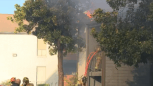 Strong winds fanned the flames that engulfed an entire building at the Corridor at Westchase apartments. The fire department said four people, including a firefighter, suffered from smoke inhalation, and one person had a non-fire-related injury.