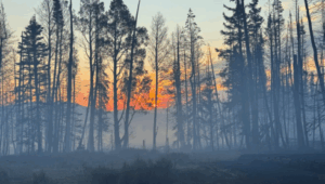 “It was pretty surreal when we looked at it (the fire), everyone for a lot of years has said, you know, when that goes, it’s going to really go,” said Megan Robinson, who lives in nearby Monroe but has property in the fire area. “We have 20 acres in Monroe Meadows, and our property burned up a couple days after the fire started.” When Robinson and her husband saw the fire begin to grow on July 13, her husband and son-in-law immediately went to their property on Monroe Mountain and began moving large equipment, even putting it in a neighbor’s pond, which allowed them to be unscathed after the fire moved through. They also removed cattle from the area. Her husband also moved some trailers, many of which are still standing.