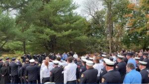 Hundreds of first responders and community members attended a service at St. Michael’s College on Saturday, honoring former Colchester fire chief Sandy Ladd as he was laid to rest.