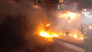 According to Battalion Chief Jason Probst, crews were initially dispatched for the report of a brush fire, but when they arrived, they quickly determined they had a single-story fully-involved commercial structure fire on their hands.