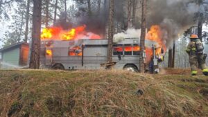 A family’s bus caught on fire Monday morning in Spokane County. According to the owner of the bus, Levi Jordan, the fire started at around 10:30 a.m. on South Dorset Road near Geiger Heights, Washington. The owner of the bus said his son saw smoke coming out of the bus, which was when they called the fire department.
