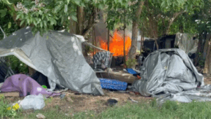 At around 12:42 p.m. Tuesday afternoon, a unit with the Guam Fire Department responded to a fire at the Harmon encampment along Route 16. The Guam Police Department was also called to respond. The fire was quickly contained and no injuries were reported. The cause of the fire remains under investigation.