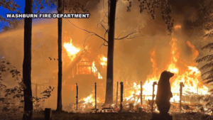VIDEO: A fire destroyed a home and a garage in Bayfield County early Wednesday morning. The Washburn Fire Department responded to the scene around 3:45 am in Bayview Township.