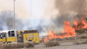 VIDEO: Police arrested a man on suspicion of arson Thursday afternoon as firefighters battled two wildfires in West Oahu. The latest fire was reported at around 11:48 p.m. near the intersection of Farrington Highway and Kunia Road. According to police, a witness reported seeing the 30-year-old suspect leaving the area moments before the fire started. Officers responded and took the man into custody for arson in the second degree. The fire caused about $5,000 in damage to nearby agricultural property, police said. No evacuations or injuries were reported.