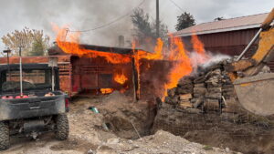 Over the weekend, a small crew of Blackfoot firefighters, with the help of volunteers and off-duty personnel, tackled a dangerous structure fire in under 30 minutes despite minimal staffing. The emergency began on Saturday afternoon, October 25. A Blackfoot Fire Department Ambulance was heading to Blackfoot from Rockford on Highway 39 to provide coverage, as multiple other ambulances were out on calls. While driving, the crew suddenly spotted a column of smoke and flames coming from a shop building near the highway.