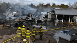 Firefighters used multiple hose lines to put out the fire and worked to keep the propane and oil tanks from overheating from the nearby fire. But, the fire department said the flames had weakened the north wall, and it was close to collapsing on both.
