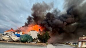 Thick black smoke and heavy flames billowed over homes in Calvert County Monday morning.