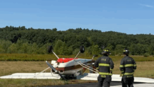 PHOTOS: One person was injured after a plane crash in central Massachusetts over the weekend. An airplane flipped onto its roof while attempting to land at Fitchburg Municipal Airport on Saturday morning, according to the Fitchburg Fire Department. The pilot was hospitalized for minor injuries. The fire department wrote that “a change in the headwind into a crosswind” is what caused the crash. The airport was closed on Saturday following the crash, according to the fire department.