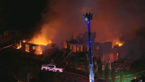 Firefighters battled a large house fire in Independence Township on Thursday morning. The home in the 5000 block of Forest Valley Drive was completely engulfed in flames by 6 a.m. As of 7 a.m., some flames were still visible inside the house, but most of the flames were out. Mutual aid was called in to help with the massive fire. Neighbors described hearing a boom before the house went up in flames. The cause of the fire is unknown. Authorities said no one was home at the time, and no injuries were reported.ย