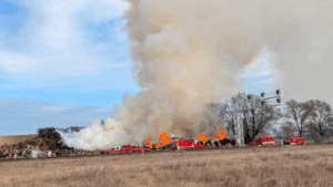 Firefighters from Big Lake were joined by crews from Monticello, Becker, and Elk River, who responded with tenders, utility trucks, and personnel to help knock down the burning compost pile. Crews used aerial and ground lines to cool and break apart the material, keeping the fire contained to the compost pile and preventing damage to any structures.