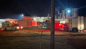 According to VFD Fire Chief Harry โTreyโ Martin, the flames were contained to a section of that one silo, and the sprinkler system activated, preventing the fire from spreading further.