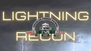 The Douglas Forest Protective Association (DFPA) has been actively involved in lightning reconnaissance and initial attack following a prolonged lightning storm that resulted in 76 registered strikes, beginning around 5 p.m. on Wednesday, September 3. Overnight, crews from DFPA responded to a total of 14 smoke investigations. Of the 14 investigations, 2 were confirmed fires.