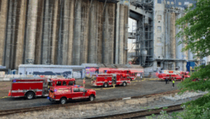 VIDEO/PHOTOS: A โperson of interestโ was detained for questioning after a two-alarm fire at the Louis Dreyfus grain elevator just north of Portlandโs Steel Bridge on Saturday evening, according to Portland Fire & Rescue. Shortly before 8 p.m., crews responded to a fire reported in a commercial building at the end of North Thunderbird Way along the Willamette River.