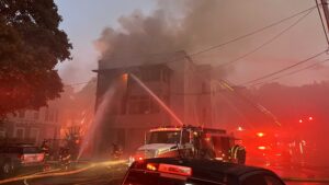 Crews say Vermont Route 9 will remain closed for several hours. A 65-year-old woman was injured while fleeing the fire. She was transported to the Southwestern Vermont Medical Center and is being treated. She is expected to be okay. The cause of the fire remains under investigation. Anyone with information should contact the Bennington Police Department.