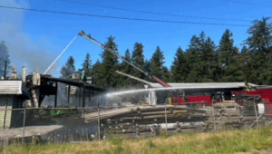 PHOTOS: A fire at a commercial building in Spanaway spread to nearby brush and caused the closure of a highway Wednesday morning. Central Pierce Fire & Rescue (CPFR) posted about the fire on X at 9:38 a.m. Wednesday. All employees evacuated the building in the 21200 block of Mountain Highway East/State Route 7. The highway was blocked in both directions while crews worked to put out the fire. At 10:21 a.m., CPFR posted that the fire was under control. Crews remained in the area to monitor hotspots in the building. CPFRโs crew 6, seasonal wildfire apprentices, were also at the scene monitoring hotspots in the brush. West Pierce Fire and Rescue assisted with the fire.