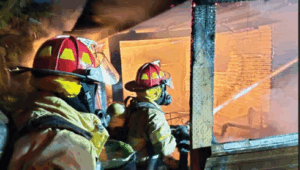 The Department of Fire and Emergency Medical Services responded to a fire at a single-story tin house in San Vicente on Friday evening after a female caller reported the incident. DFEMS public information officer Robert Mojica said the call was made at 9:10 p.m. Fire personnel arrived at 9:22 p.m. and found the house fully engulfed in flames, with no occupants inside. โTwo teams entered the home to quickly extinguish the fire. At 9:27 p.m., Captain A. Farley reported to dispatch that the fire was under control,โ Mojica said.
