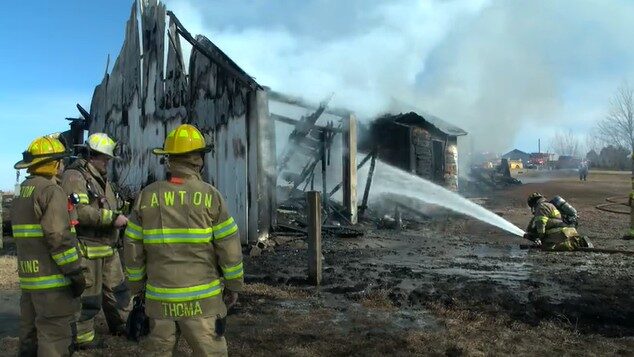 VIDEO: Multiple Siouxland Fire Departments responded to a grass fire that quickly turned into a structure fire that destroyed two barns.